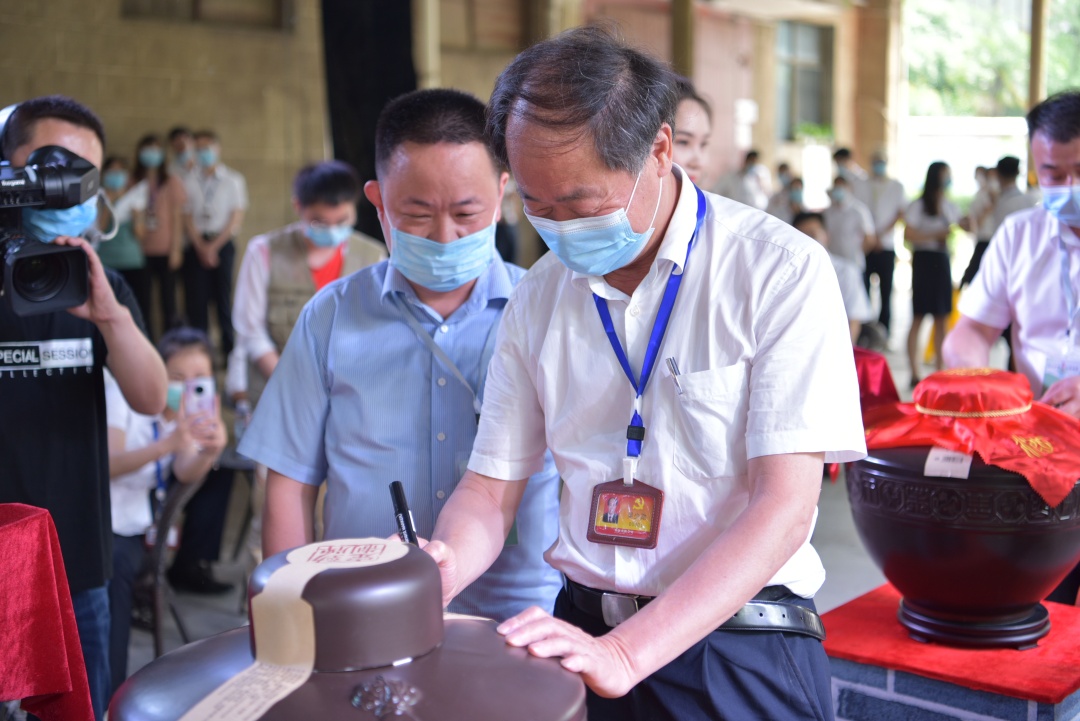 封藏活動最受矚目的30L庚子年封藏紀念酒則由勁牌公司董事長、總裁吳少勛親自提筆封簽。據悉,勁牌公司為這批30L庚子年封藏紀念酒專門定制了酒契,以字為證,突顯了封藏的儀式感和文化價值。
