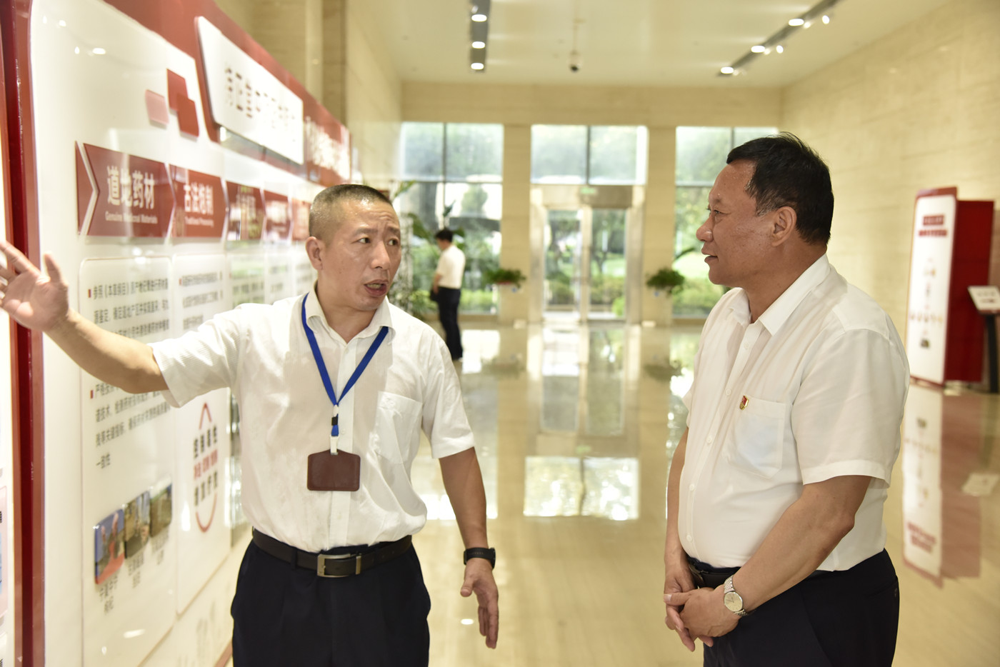 巴音克西一行實地考察了共享智慧藥房、勁牌研究院、提取車間,深入了解了勁牌公司的企業文化、生產工藝、技術創新、產業布局等內容,巴音克西一邊仔細聆聽副總裁李清安的講解介紹,一邊就中藥配方顆粒的臨床使用、企業發展規劃等問題進行親切交流。