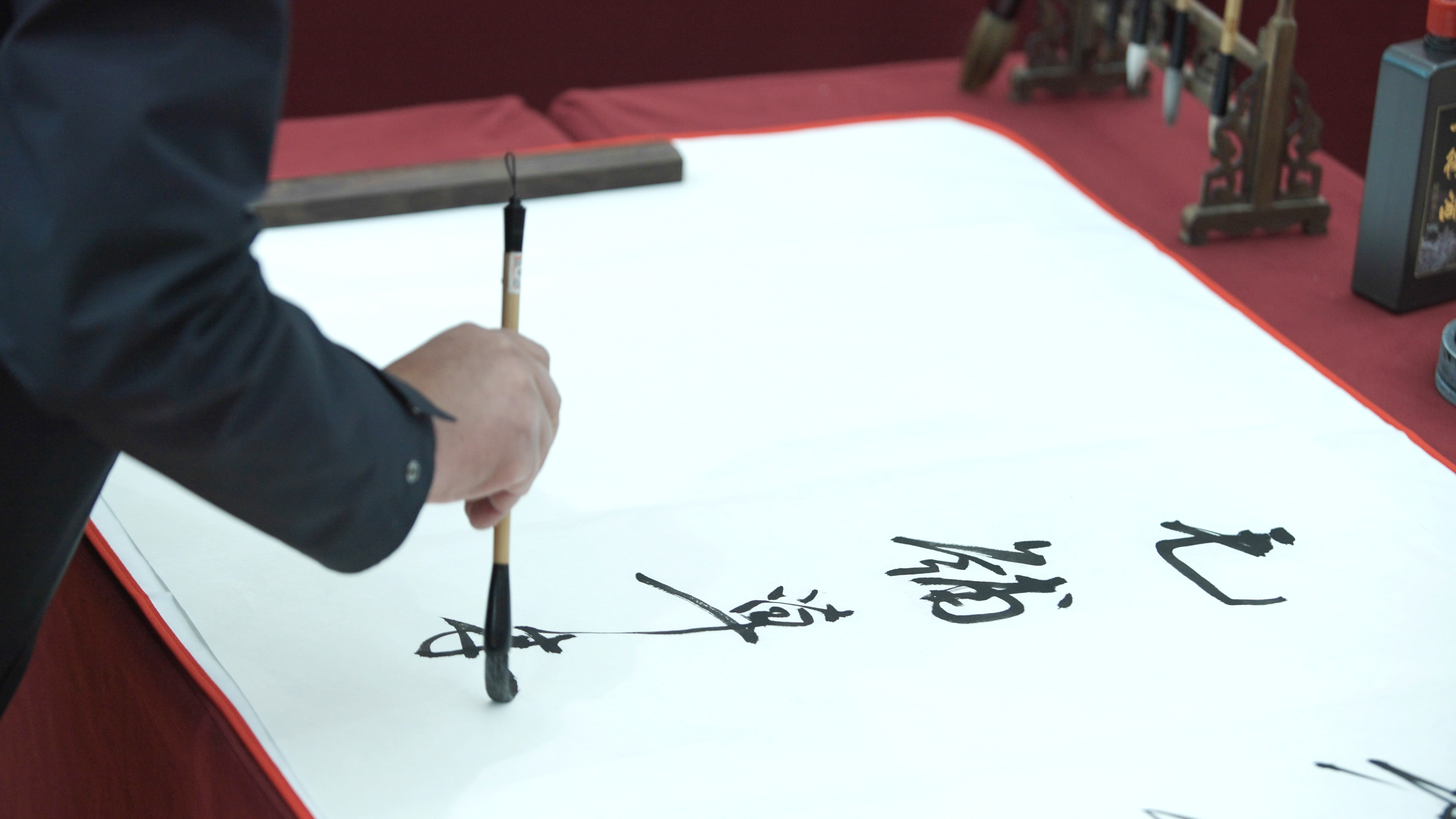 提筆寫下 “和而不同,草本毛鋪”等墨寶留念